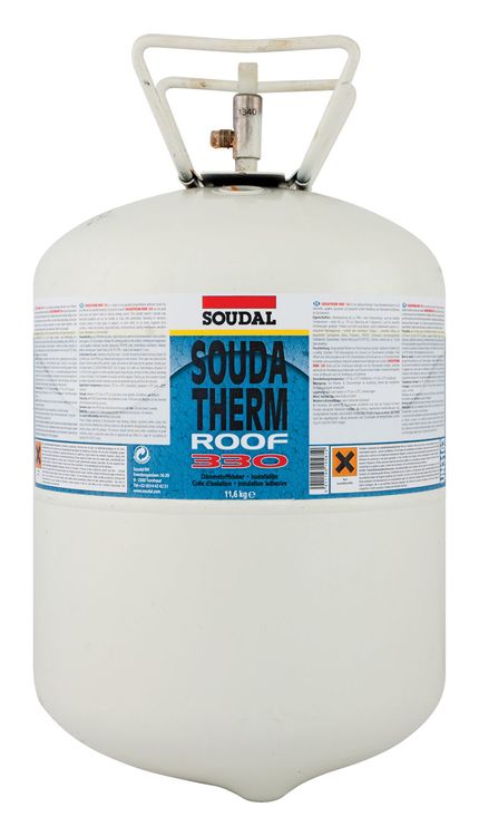 Soudatherm Roof 330 is a polyurethane foam adhesive in a large canister format for the efficient, clean, economical and durable bonding of roofing insulation boards onto most underlying roofing substrates.