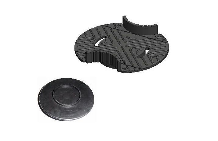 The CIP Carosystems Pedestal Support Plate For Decking is designed to be used with the RC10 / RC14 Fixed-height rubber pedestal base. This support plate has a shallower recess than the standard CP support plate for decking which means it can be fitted into the circular hole without sticking through the bottom of the rubber base.