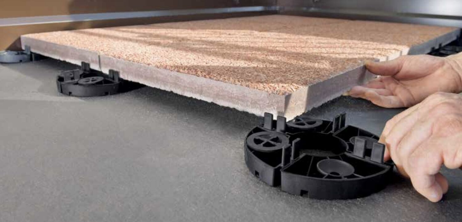 Paver supports with fixed height (non-adjustable) are available in two different sizes. They present the quickest and cheapest solution for the installation of raised paver slabs.