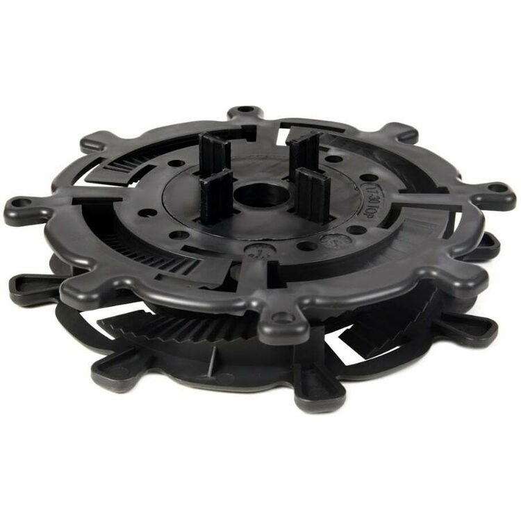 With two height ranges to choose from, 10-17mm and 17-30mm, the support will adjust in steps of 1mm to help you get the perfect decking surface. The openings of the pedestal is created to install spacers with a rotary joint disk. This support is available in fixed head only.