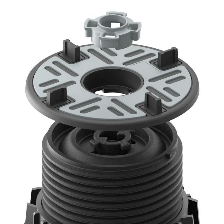 The pedestals are placed on a flat, hard surface, with no mechanical fixings required. They need to be placed on a structured surface, and shouldn't be placed on non-compacted earth.