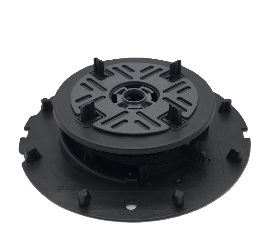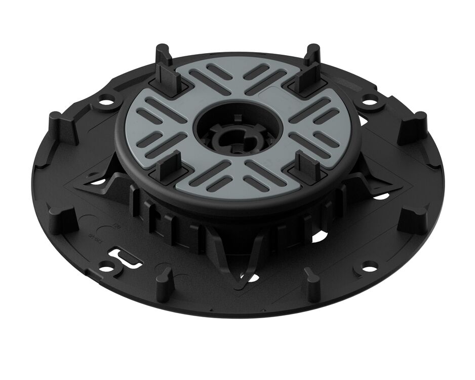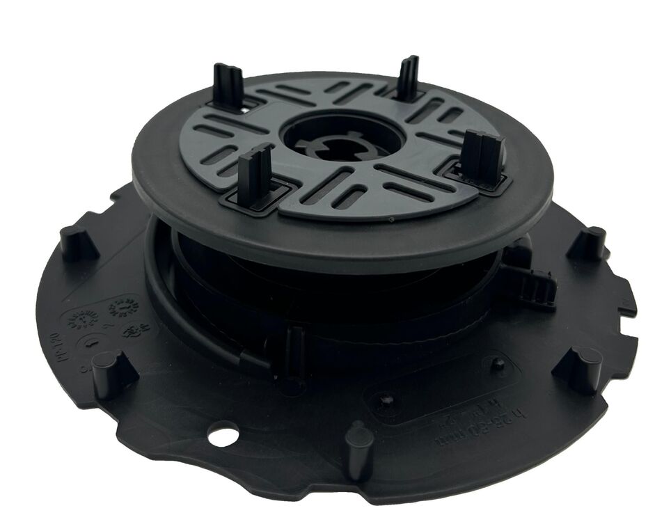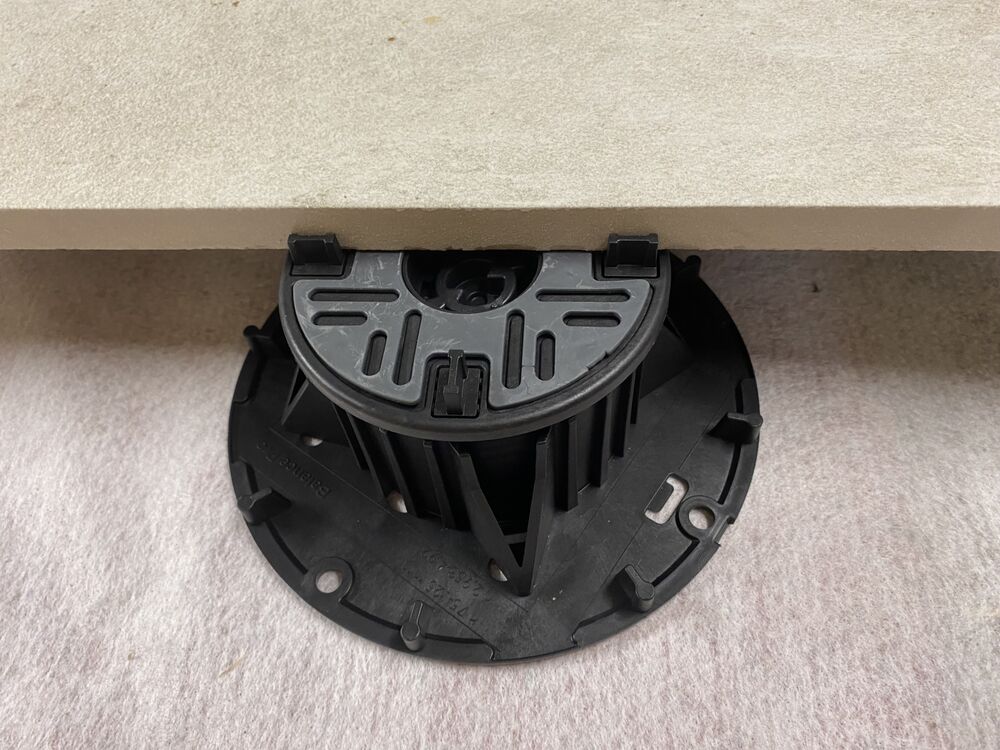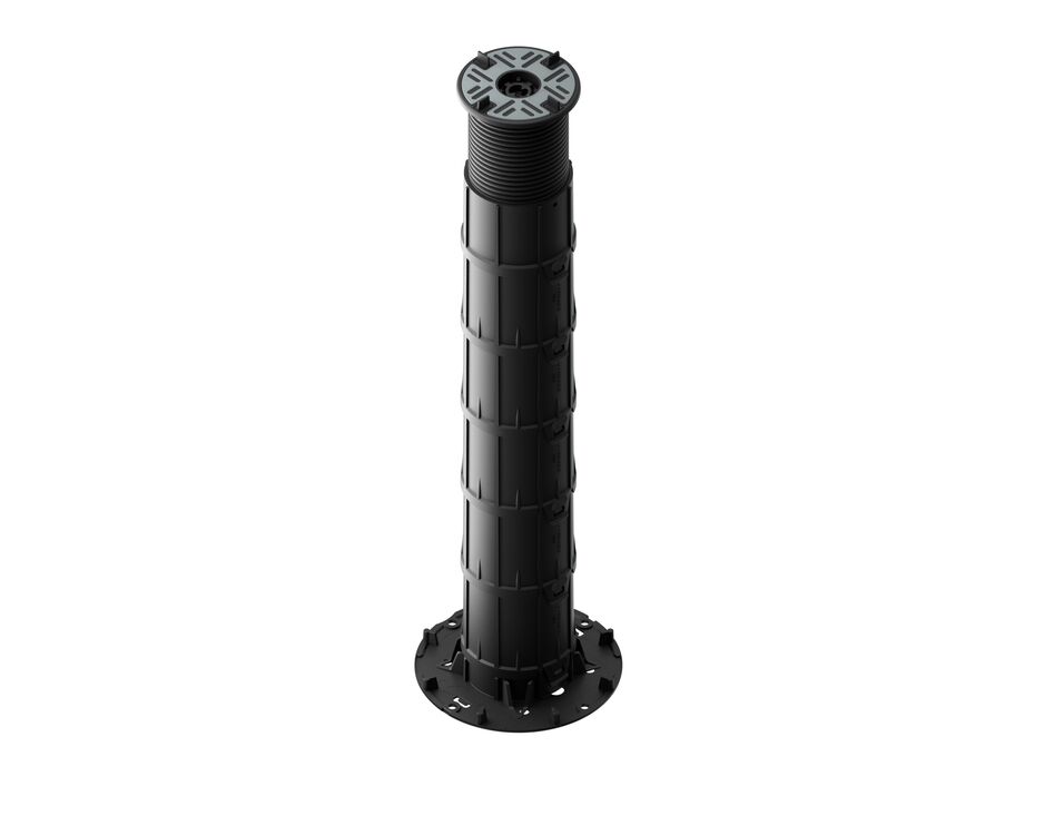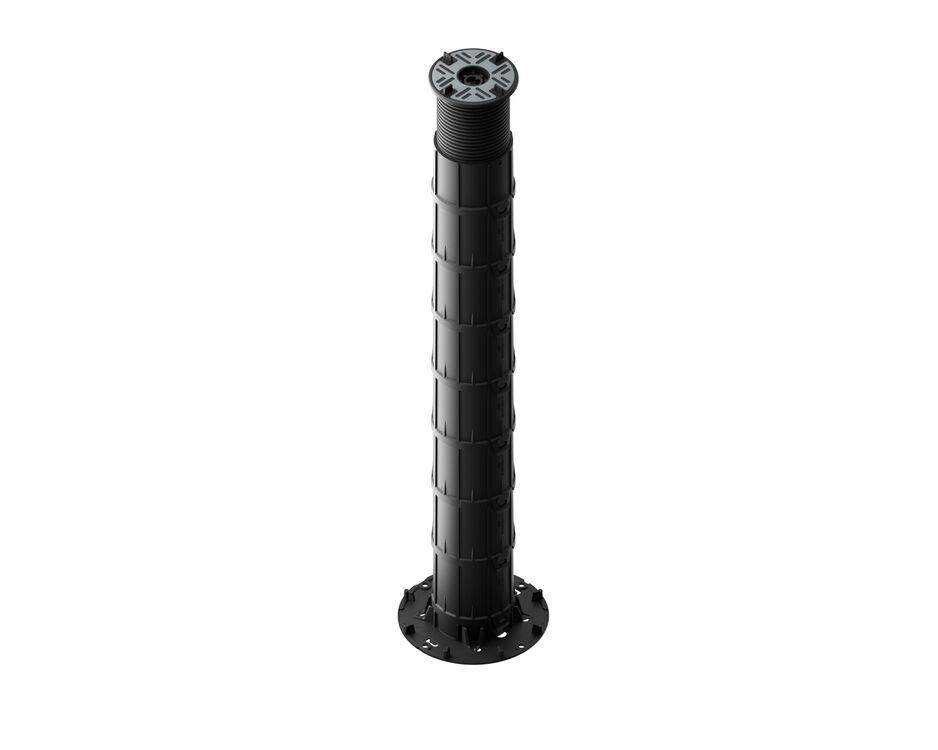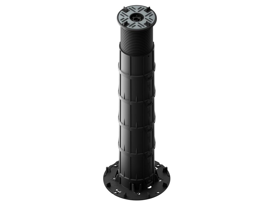 Able to tolerate over 3 tonnes in weight per unit, the headpiece of this pedestal is self-levelling as standard but, by using the “grey nut”, the head can be locked rigid within the same unit. The telescopic thread gives a large height range per unit; simply twist the stem to adjust the height of the unit, which can be achieved with slab / tile or decking joist still in place. This is a suspended system so the weight of the paving slabs / tiles ballast themselves.