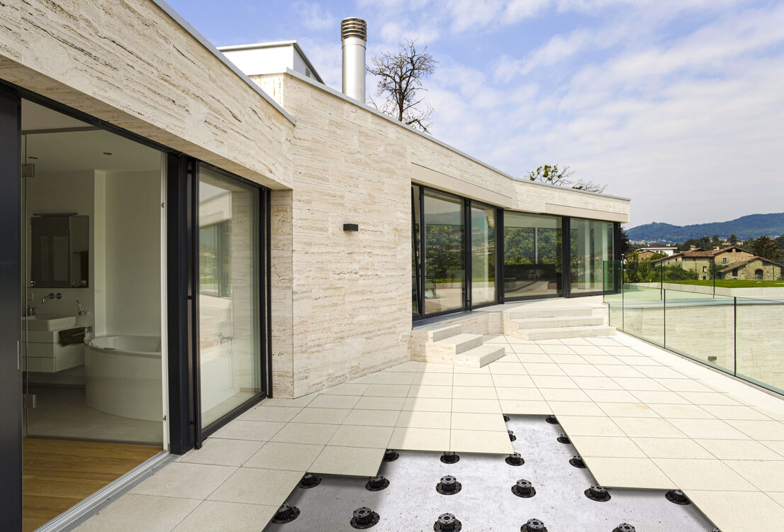 The pedestals are placed on a flat, hard surface, with no mechanical fixings required. They need to be placed on a structured surface, and shouldn't be placed on non-compacted earth.