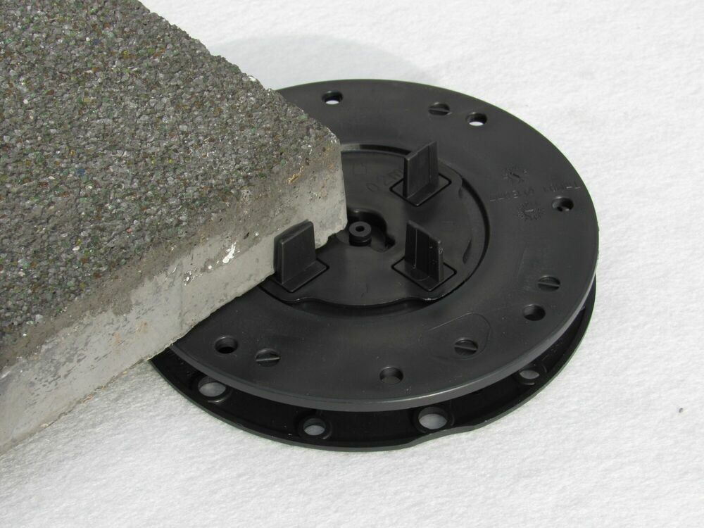 The pedestals are placed on a flat, hard surface, with no mechanical fixings required. They need to be placed on a structured surface, and shouldn't be placed on non-compacted earth.