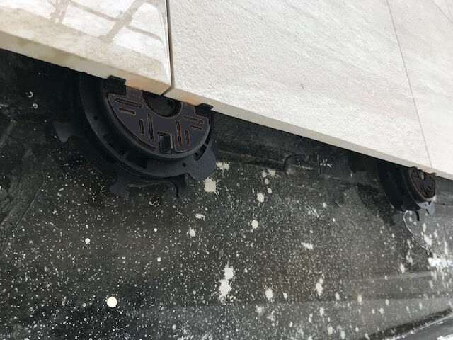 Special handle grips have been incorporated into the design to help installers fit their fingers into this tight gap and turn the pedestal to adjust the height. Adjustment can be made while the slab is in situ, so delays by constantly lifting the slab to change the height are avoided.