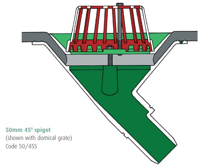 The Caroflow 50mm 45 Degree Angle Spigot Flat Roof Rainwater Outlet (Dome Grate) is an effective drainage option that's suitable for most roof finishes. Made from LM6 Aluminium Silicon Casting Alloy with a huge 50-year life expectancy.
