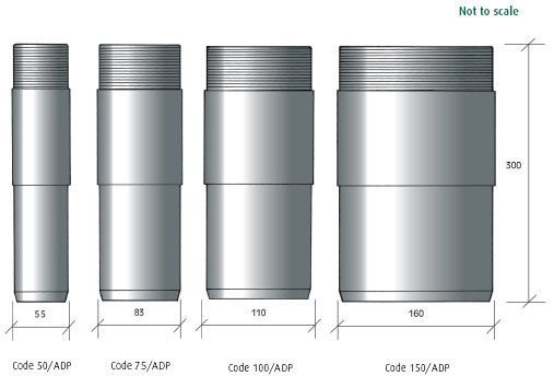 The standard length of a Caroflow Threaded Adaptor is 300mm, but longer lengths can be produced to order up to a maximum length of 1000mm