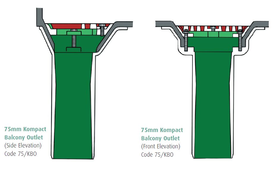 The Caroflow 75mm Flat Roof Kompact Balcony Outlet is a smaller, sleeker version of standard Caroflow Balcony Rainwater Outlets with all the same benefits. Comes with a hardwearing aluminum construction and specially designed to allow for a simpler and less destructive installation in refurbishment and new balcony installations.