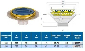 Flangeless Car Park Outlets are also designed for cast in situ slab construction where waterproofing is not required. They feature a combined clamp and grate arrangement which is securely bolted to the body of the outlet. The combination of clamp and grate as a single unit generally improves strength and stability as well as providing quick and easy access to pipework.