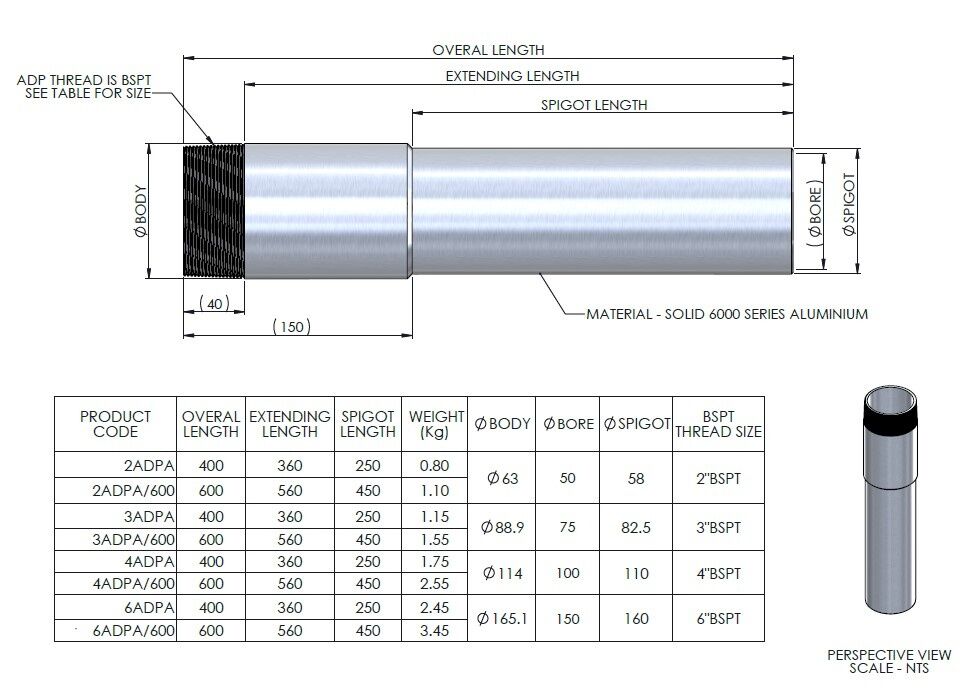 Supplied with BS EN 10255 taper male thread to ensure a completely watertight joint when screwed home into the socket outlet, the Threaded Spigot Adaptor is screwed into the base of the outlet using a PTFE tape or silicone sealant to obtain a gas-tight seal. The spigot end of the adaptor can then be connected to the pipe socket and the length of the spigot end can be reduced by cutting as required with a fine toothed saw.