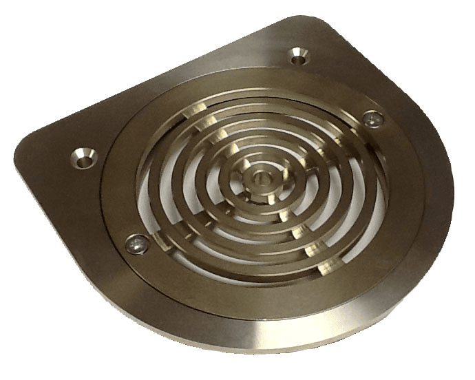 After waterproofing to the outlet and the clamp ring has been fastened down, an adaptor bezel is fitted to the clamp ring which allows for the fitting of your Star pattern or Concentric Ring grate.