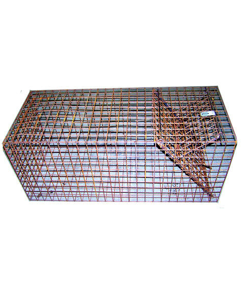 An extremely strong single live catch cage trap with bait hook release and deadfall galvanised door.