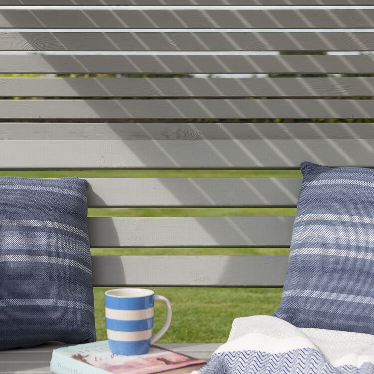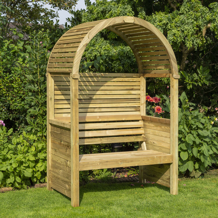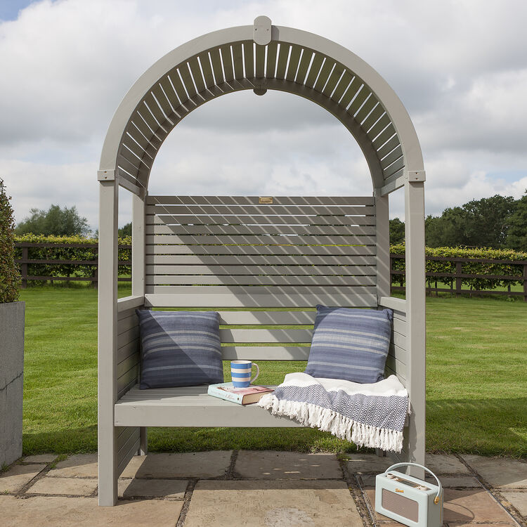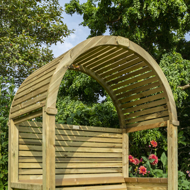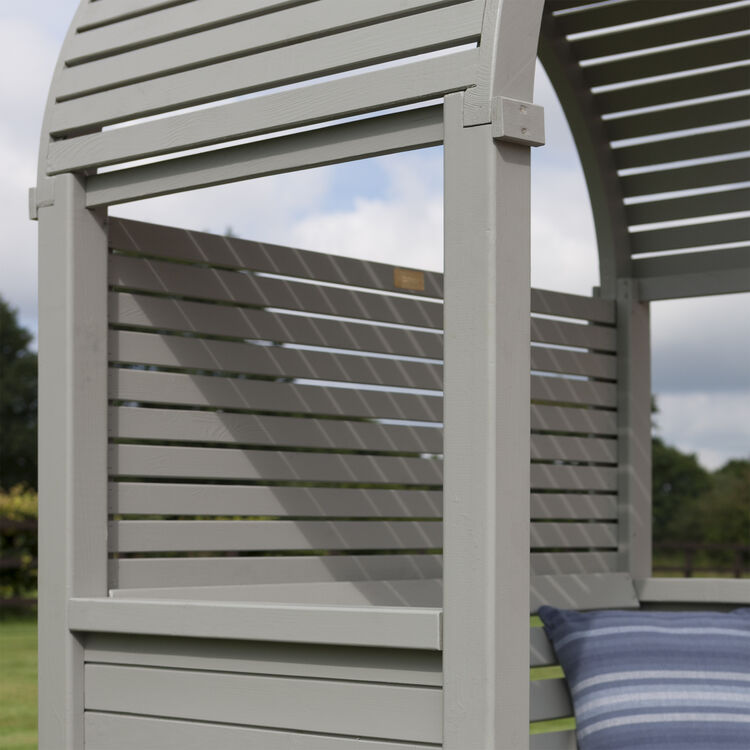 The Modena’s horizontal slats give a contemporary twist to a classic arbour design. The open slatted roof gives an airy feel whilst providing shade from the sun. A great place to sit and enjoy the garden.