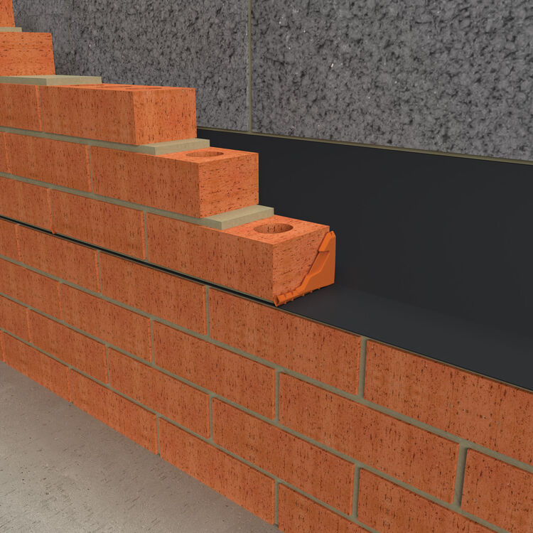 The unique diamond shape profile helps to increase the drainage flow rate along the base of the channel promoting self-cleaning and removal of debris build-up. Ribs along the angled outer walls also create a more robust mortar key within the perp end to ensure a secure fit within the outer leaf construction.