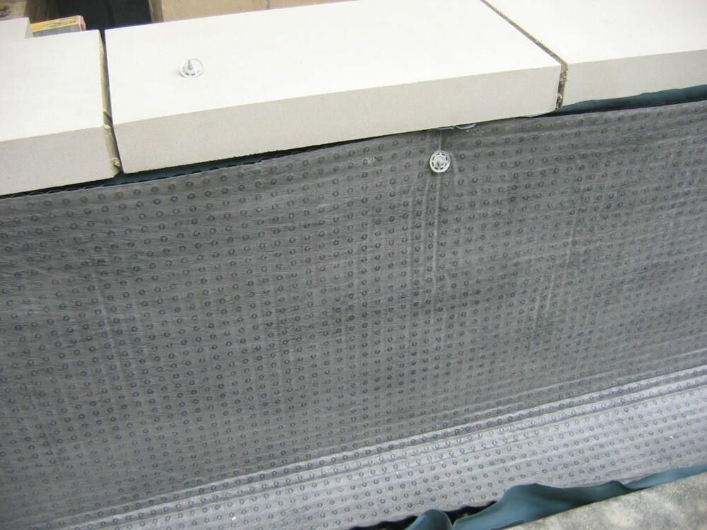 Protecto-drain 8 is a dimpled HPDE membrane, sometimes called a CAVITY DRAIN or a FIN DRAIN, for use against foundation walls, basements and subterranean concrete, waterproofed structures. It is designed to protect the structure against mechanical damage and to create an air gap between the waterproofing and the earth, producing a reliable drainage channel for groundwater to pass
