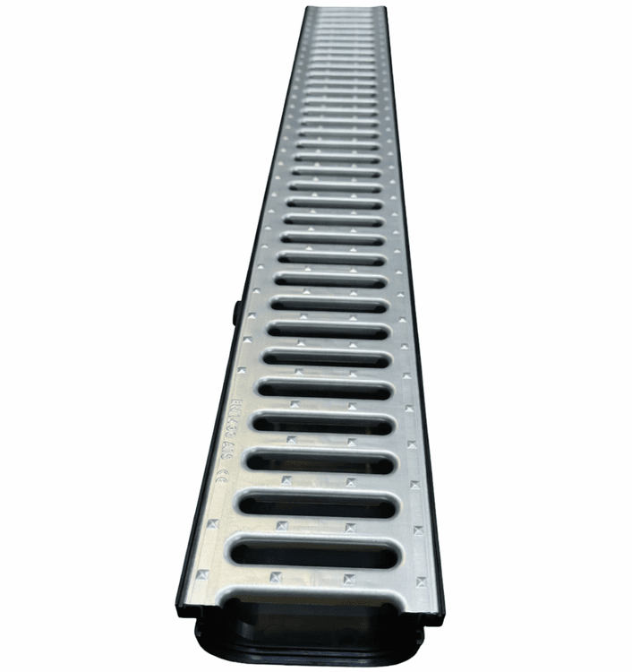 The galvanised steel grating provides excellent resistance to corrosion and wear, ensuring long-lasting performance in outdoor conditions. Combined with the tough polypropylene channel body, the system is a reliable, low-maintenance drainage solution for many domestic installations.