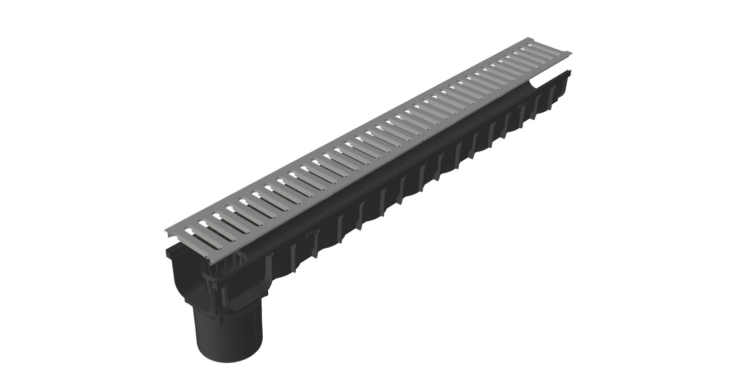 This inexpensive clever unit will replace the bottom outlet with a 110mm connection to below ground pipework. Seals to the underside of the channel with a rubber seal and 4 screws, the dip tube trap is inserted from inside under the grating and leaf guard fitted all in one handy bag.
