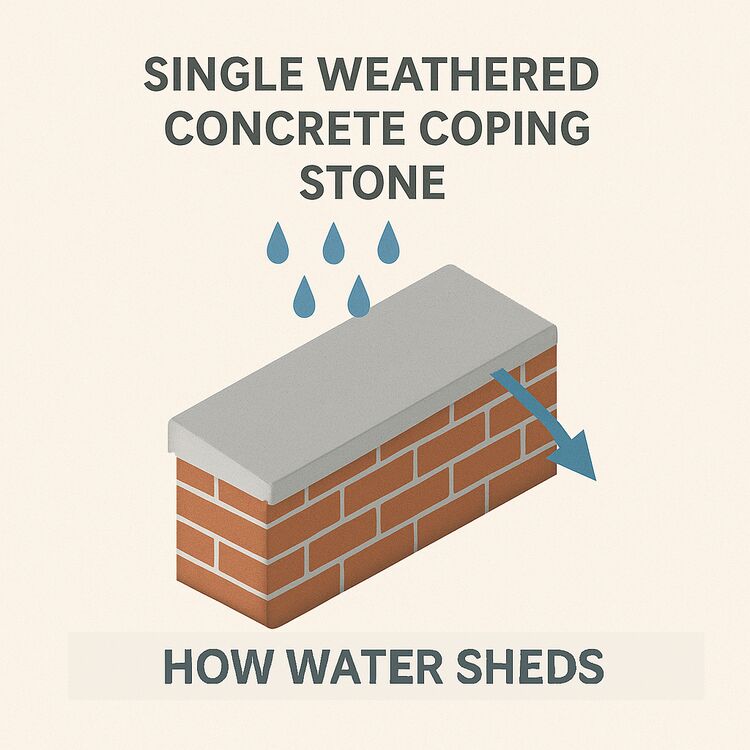 The single weathered profile is designed to direct rainwater to one side of the wall, making it ideal for applications where controlled water run-off is required. By encouraging water to shed in a single direction, these copings help reduce moisture exposure to the masonry below and protect the wall face from long-term weather damage.
