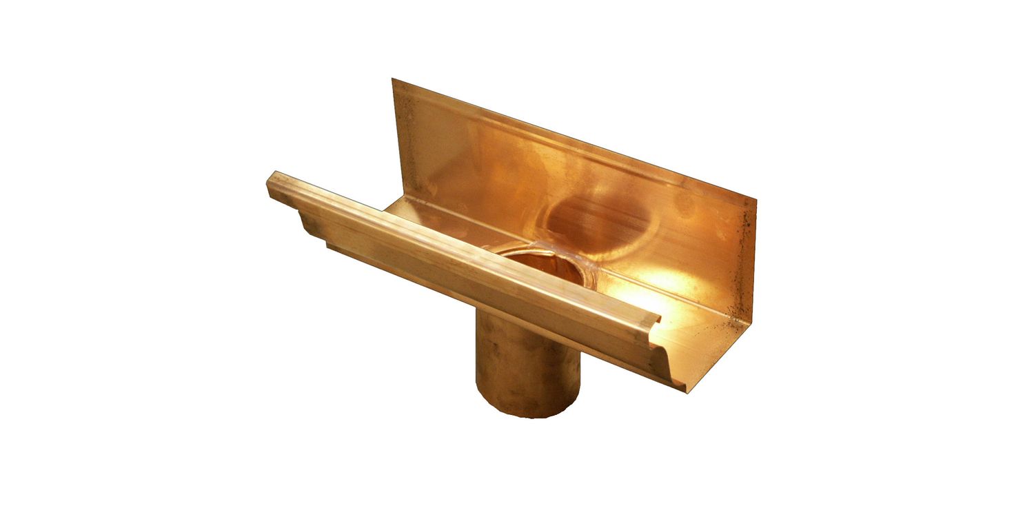 Copper Large Ogee Running Outlet - 100 ø 152mm x 130mm Our Ogee style copper gutter is manufactured from 100% natural 0.6mm copper and is supplied in 2.4m lengths, making both transportation and installation uncomplicated. This attractive design has a decorative front more suited to older style properties. Fitting our Ogee copper guttering couldn't be easier, with pre-made corners and outlets. Internal joints simply require silicone sealant and riveting in place.
