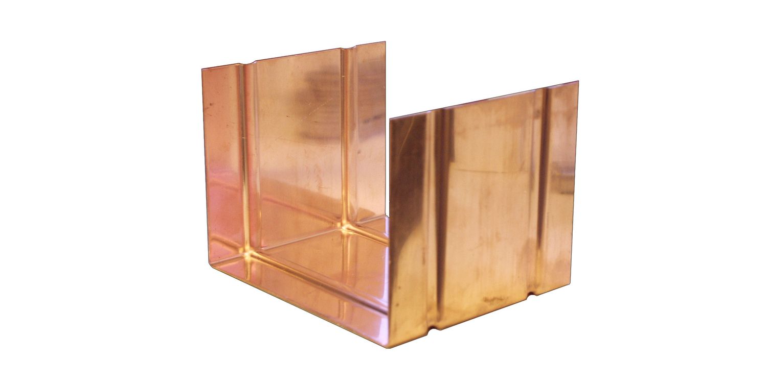 Copper Standard Box Gutter - Joint 90mm x 65mm Our Box style copper gutter is manufactured from 100% natural 0.6mm copper and is supplied in 2.4m lengths, making both transportation and installation uncomplicated. This simple design has a folded back edge for strength and an attractive rolled front for decoration. Fitting our Box copper guttering couldn't be easier, with pre-made corners and outlets. Internal joints simply require silicone sealant and riveting in place.