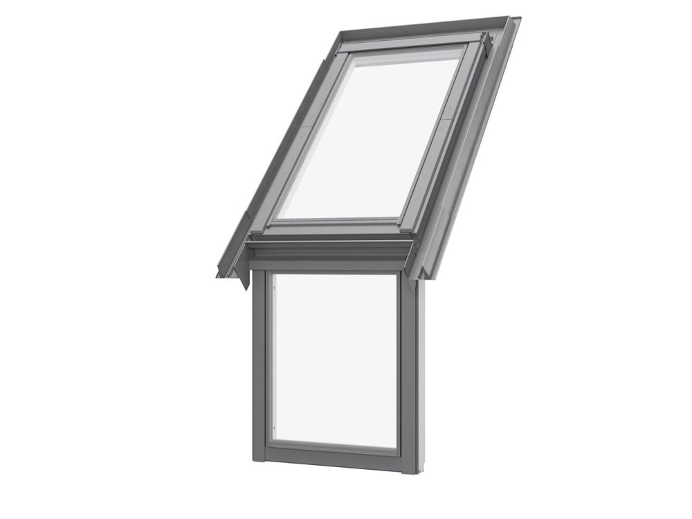 Suitable for installation for two VERTICA ENERGY (KAN type) roof windows, besides each other with 120 mm distance between them. It brings more natural light into the room. Roofing material: Universal solution for high profiled roofing materials between 16-120 mm Parts: Upper element 2 pcs of side parts Middle gutter Drainage gutter