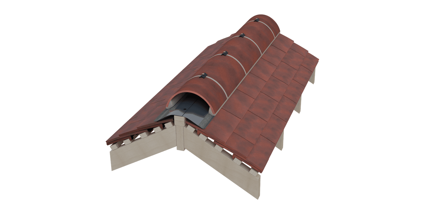 The VentRidg® is a universal ventilating GRP ridge tray system to provide high level roof ventilation in applications where a traditional mortar bedded ridge tile appearance is required.