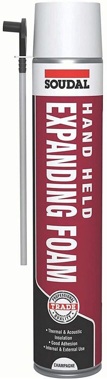 Soudal Hand Held Expanding Foam Gap Filler is a one-component, self-expanding, ready to use PU foam that adheres to most common building materials and is resistant to water, heat and ageing. This handheld spray is ideal for all general-purpose gap filling and offers excellent thermal and acoustic insulation values.