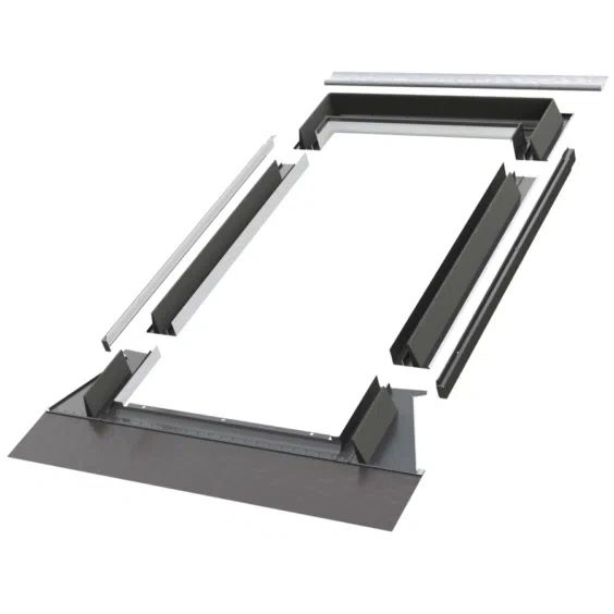 The flashing enables a tight connection between a window and profiled roof coverings, such as tiles and high-profile metal sheeting. It can be used for roof coverings with a profile height of up to 90 mm.