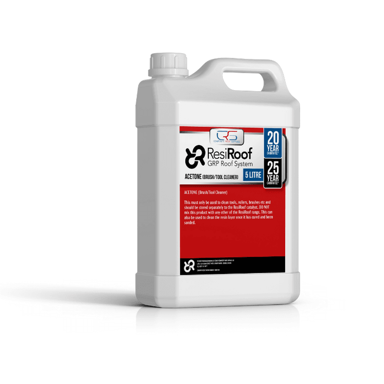 ResiRoof GRP Roofing System Pure Virgin Acetone Brush & Tool Cleaner is used for cleaning resin from tools, rollers and brushes and wiping down your down sanded GRP Resin surface.