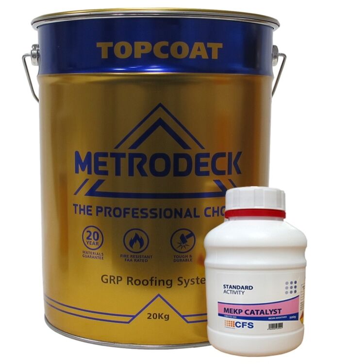Metrodeck topcoat is specifically manufactured for GRP roofing systems. When used with Metrodeck resin it meets BS476 part 3 AA external fire test specification. Contains flexible additives to resist thermal expansion and UV stabilising chemicals to keep its colour and finish for longer.