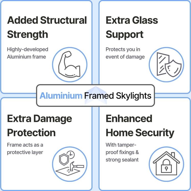 While frameless glass rooflights are characterised by their installation requiring no screws, and only a silicone seal below the glass, Brightside skylights feature a dedicated, structurally sound aluminium frame.