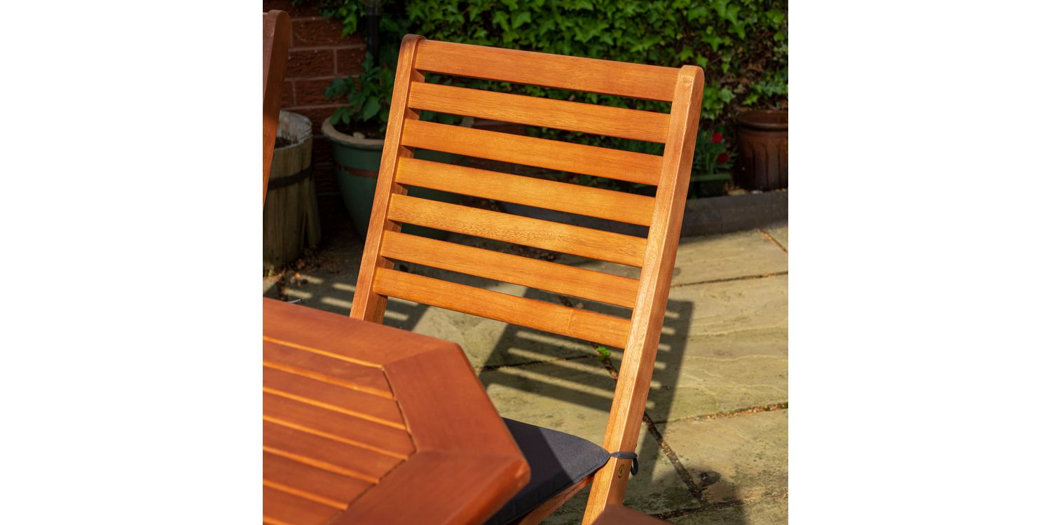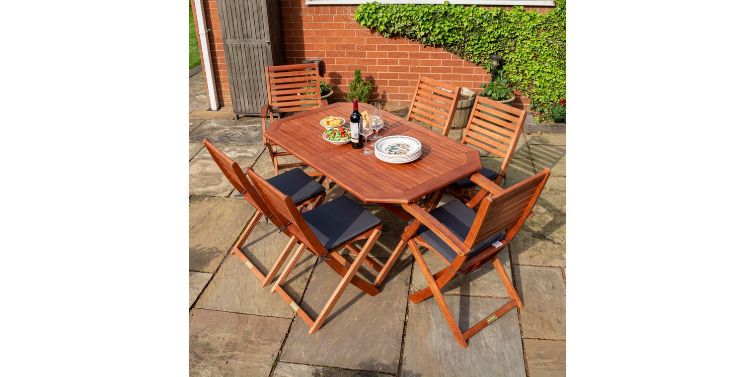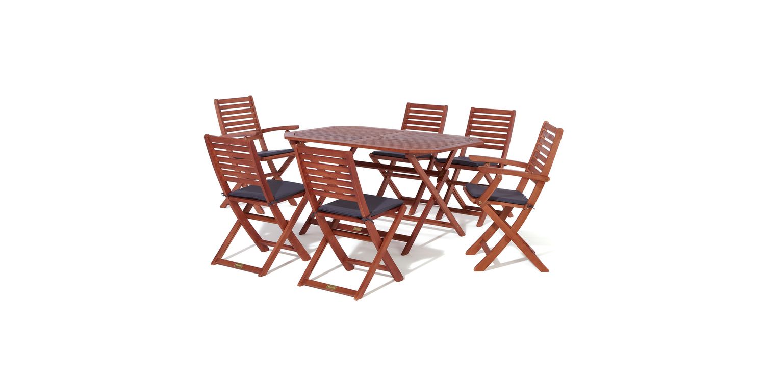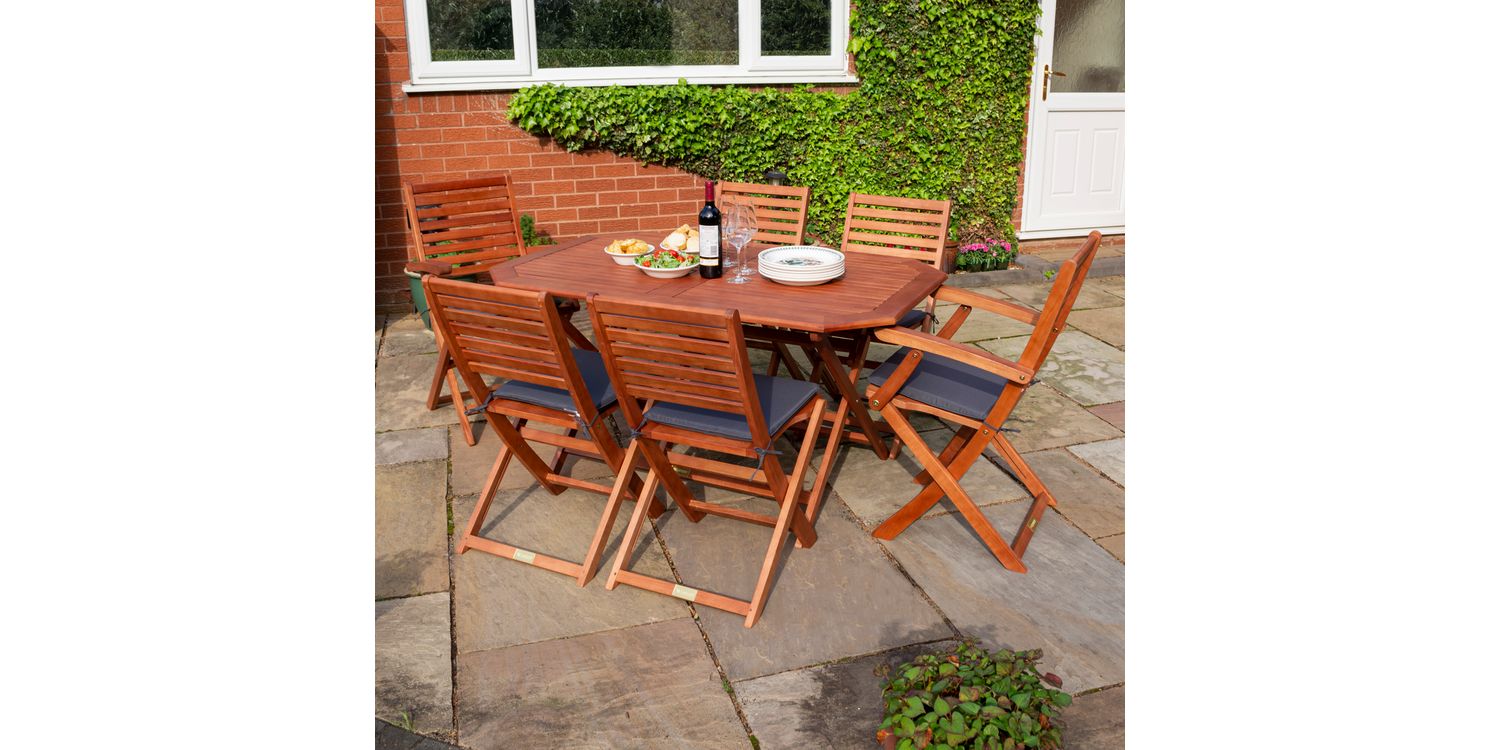 The Plumley six Seater Dining Set represents the perfect garden item; offering style and functionality with value for money. Being made from Eucalyptus Hardwood and coming with a stained finish, the Plumley Dining Set will be sure to bring you many years of enjoyment.