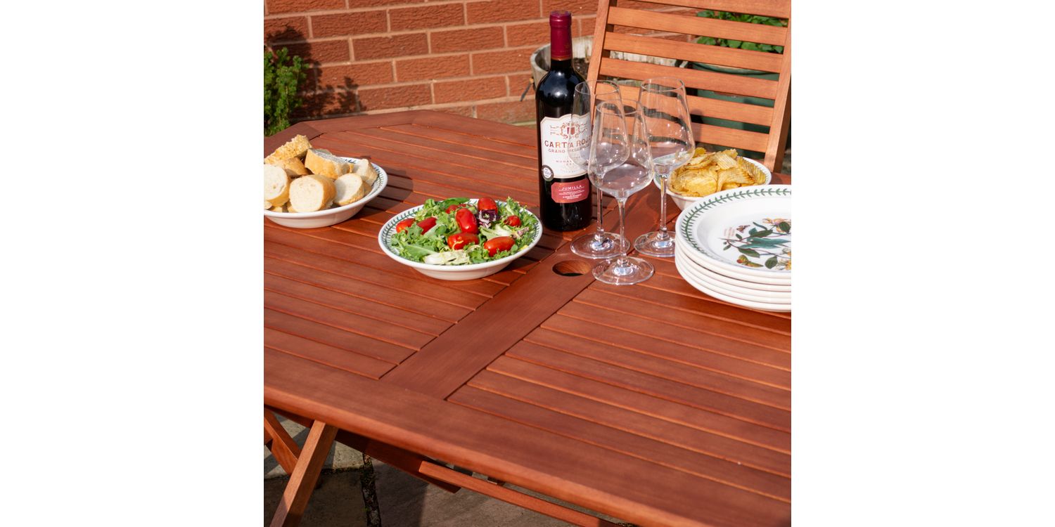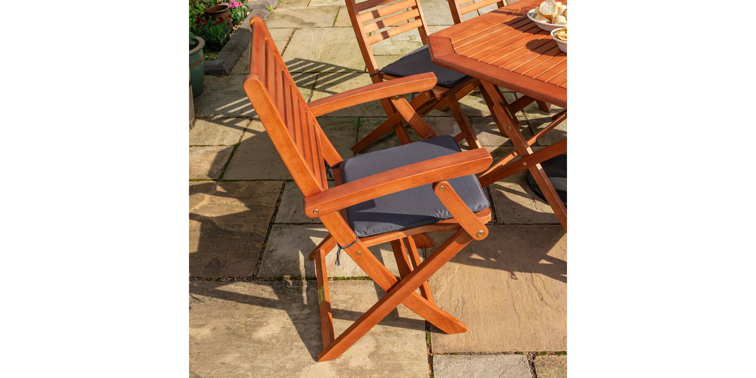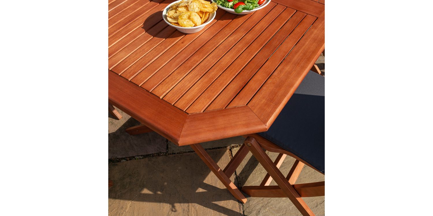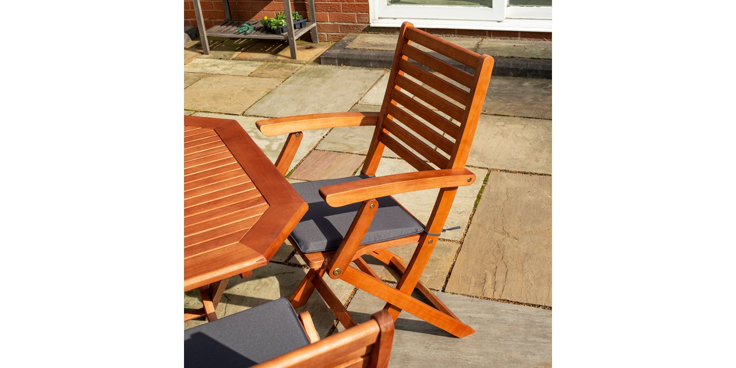 The Plumley six Seater Dining Set represents the perfect garden item; offering style and functionality with value for money. Being made from Eucalyptus Hardwood and coming with a stained finish, the Plumley Dining Set will be sure to bring you many years of enjoyment.