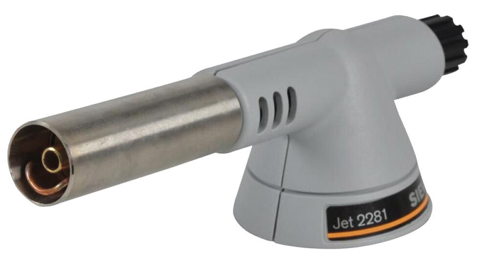 The Sievert 2281 Jet Blowtorch is a multi-purpose torch that is suitable for various applications. These include heating, soldering/brazing and paint stripping. The Jet has a 20mm diameter burner with built-in anti-flare, meaning that it can be used at any angle without flare-ups. It also allows precise flame adjustment.