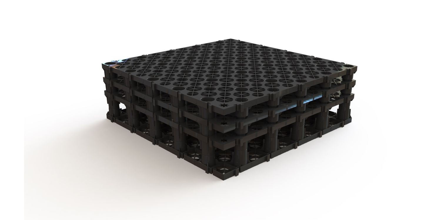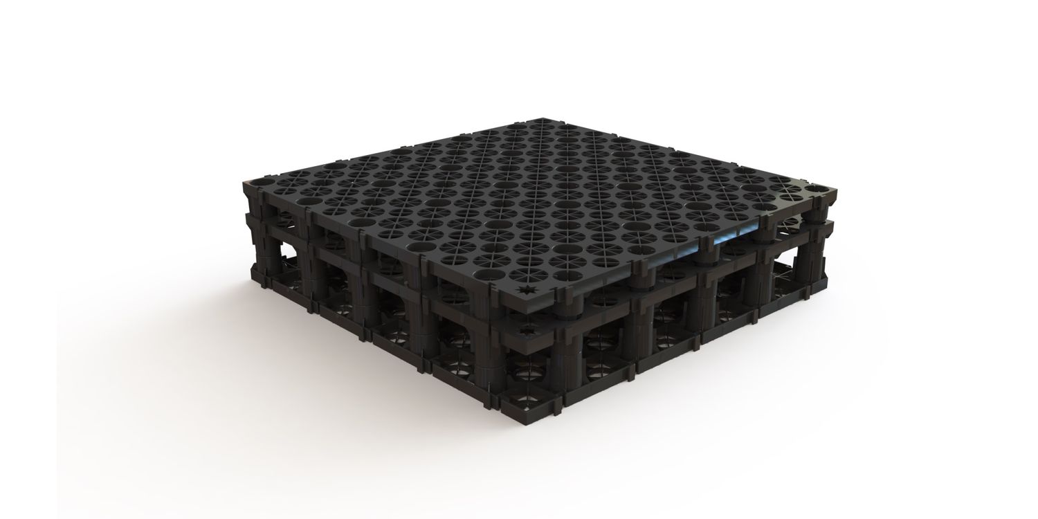 The ACO RoofBloxx system can be used to create a shallow attenuation tank 85mm, 125mm or 165mm deep, without the need for shear connectors. The kits are sold in multiple of product code 11000 as below:
