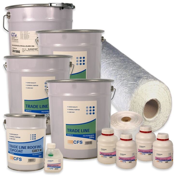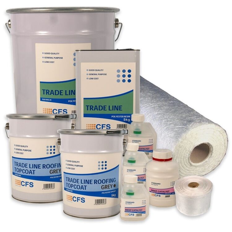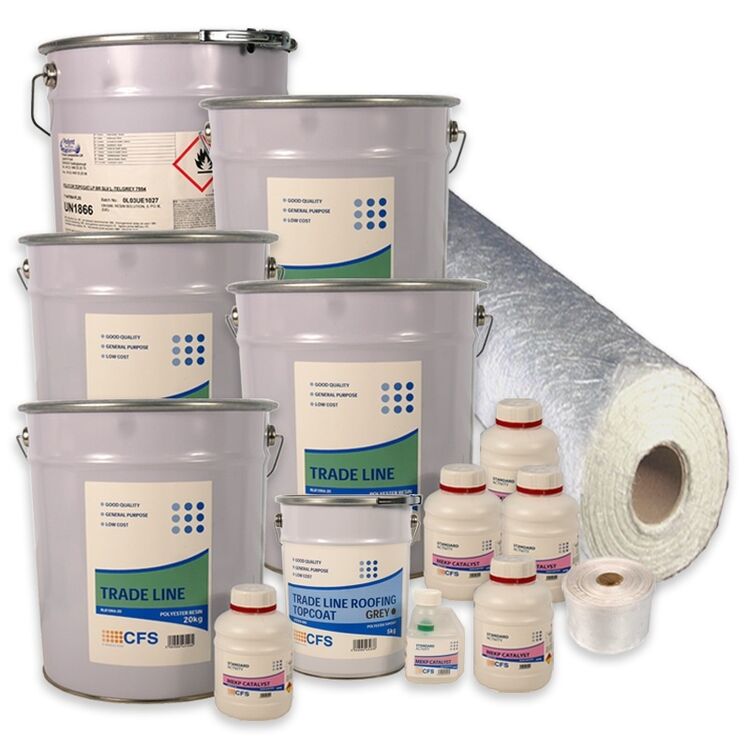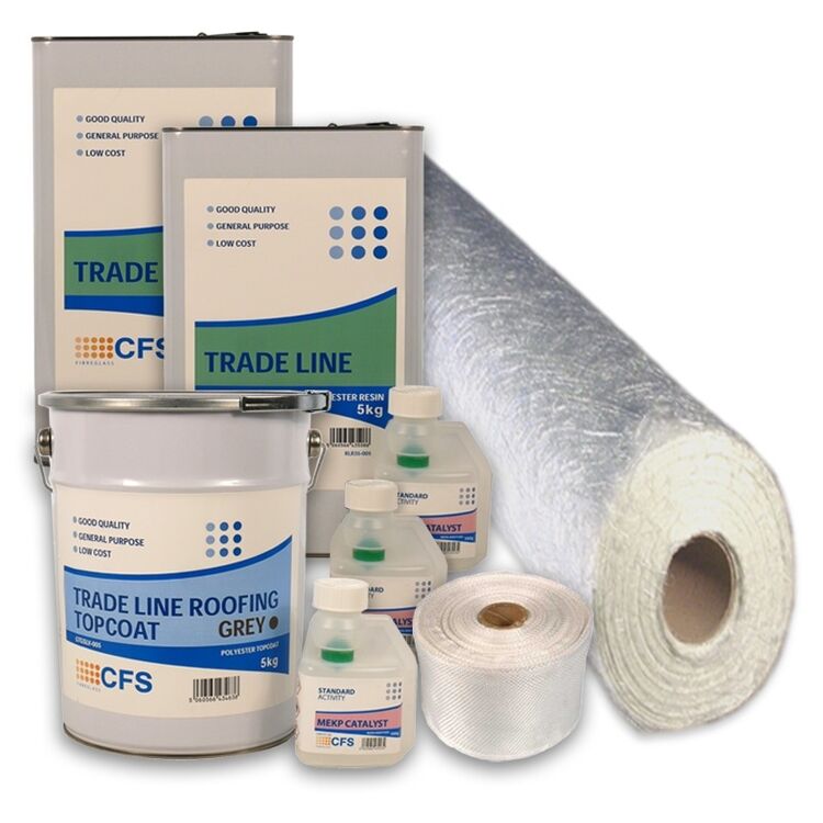 These kits provide the trim jointing tape, mat, resin and topcoat required for a single layer GRP flatroof when using T&G decking (if using cut edge decking some additional tape may be required on the larger packs).