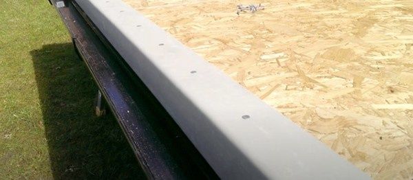 Fix a single batten level with the deck, apply 30mm PU beads every 300mm, and secure the trim with nails. Reinforce the trim for ladder use, either by doubling up or adding an extra layer of GRP laminate.