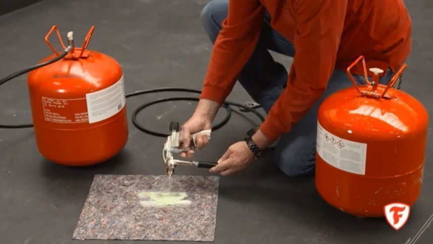 The TRC Spray Gun Hose is suitable for use with the adhesive spray gun and spray bonding adhesive canisters. Simply attach the larger nut end of the hose to the spray gun and then use a wrench to ensure a secure fit that isn't over-tightened. Connect the smaller nut end of the hose to the canister, making sure the thread is aligned so that the fitting turns easily and then use a wrench to tighten the connection, again without over-tightening.