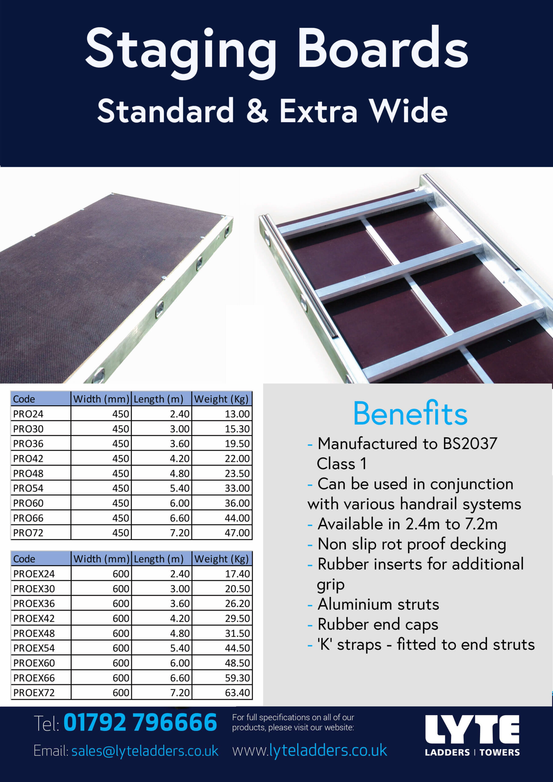Achieve maximum safety and reliability with Lyte’s Class 1 BS2037 Lightweight Narrow Width Staging Boards, offering a robust, non-slip working platform for industrial use. Manufactured in the UK, these boards are built to handle demanding tasks with ease.