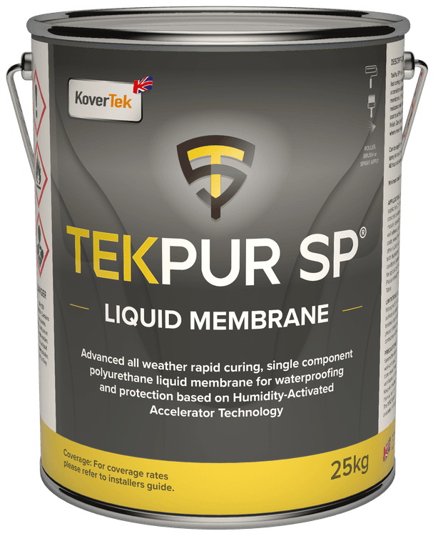 TekPur SP PU Single Pack is a single component, fast curing polyurethane that forms a consistent bubble free seamless membrane, offering superior UV and weather resistance and can be applied in a single coat to achieve a high tensile, durable finish. Can be used without reinforcement where movement is limited.
