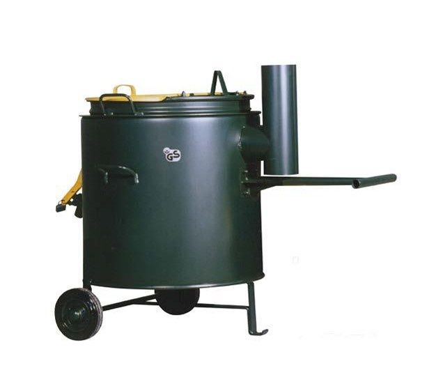 This Grun Round Bitumen Boiler & Burner is characterised by its sturdy design. The wind shielded manually operated propane vortex beam burner guarantees high melting efficiency. Further engineering features include the special exhaust gas chimney, double jacket insulation, and removable tub without internal heating tubes. Bitumen is removed with the built-in lockable drain tap.