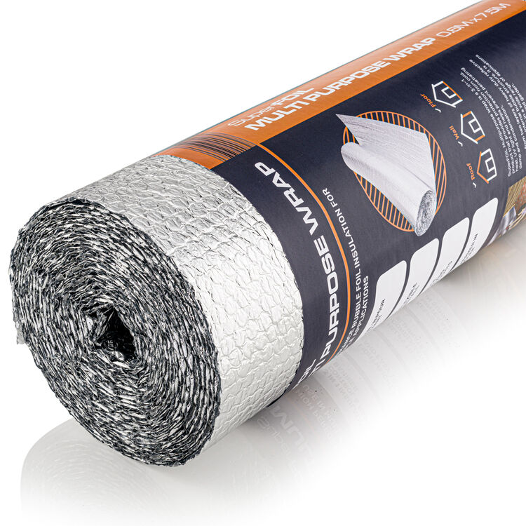 SuperFOIL multipurpose wrap is a 3 in 1 product that provides protection from cold, heat, UV light and helps prevent draughts, penetrating damp and condensation. Made from two layers of heavy duty reflective foil with an internal bubble structure. It is suitable for use in a wide range of applications around the home and garden. Suitable for use in: Lofts & Basements, Garages & Sheds, Garden Buildings & Greenhouses, Kennels, Stables & Hutches, Boats, Caravans and Campervans.