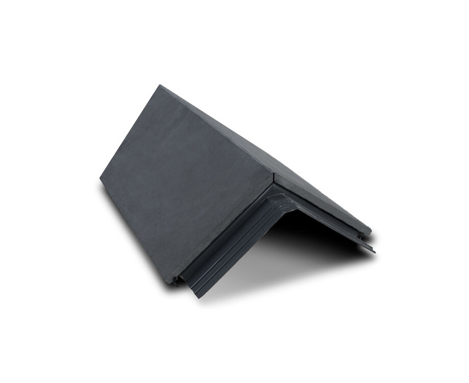 The Mayan All-In-One Natural Slate RealRidge Hip End Tile Closer is a fully vented, rapid dry fix, interlocking hip tile for roof pitches of 37.5º - 45º degrees. Designed for use with our All-In-One RealRidge range, which is the simplest, fastest and best way to install the perfect natural slate fully vented ridge. This hip end tile cap is made from beautiful and durable 12mm thick graphite natural grey slate that is chemically and mechanically bonded to a long life GRP liner that incorporates a built-in connector, clips and our unique vents strip with special rubber seals.