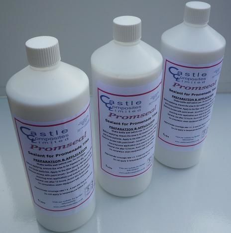 Castle Promseal is a water-dispersed acrylic resin latex-based hardener and dust proofer, designed to protect and enhance the surface of GRC (Glassfibre Reinforced Concrete) promenade tiles and slabs. This acrylic sealer can be applied to Castile Promenade Tiles and Promenade Slabs when laid.