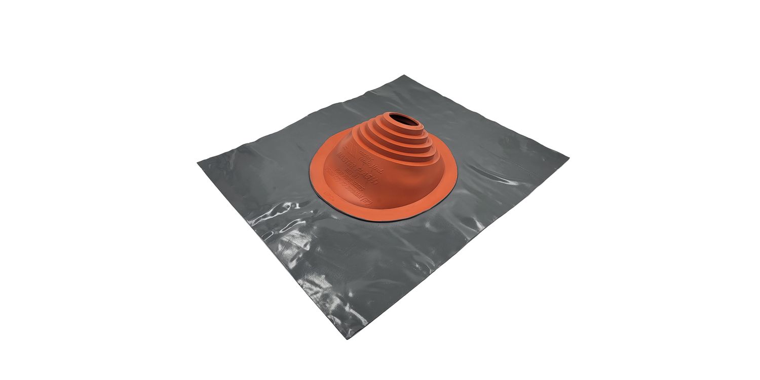 Red Silicone Lead Sheet Base of 508 X 508MM, Open Top, pipe size of 76-203MM. With a built-in 20º pitch, this product is adaptable to almost any roof pitch, including – but not limited to – a standard, domestic, 45º angle. The base is made from environmentally-safe and protective-coated safe lead. This product can be used with Type B vents due to its self-extinguishing feature.