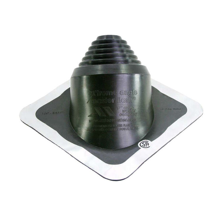 Designed for the metal roofing industry, Master Flash EPDM Extreme Angle Pipe Flashing is suitable for pipe sealing projects at any extreme roof pitch from 35º to 65º degrees. Accepting and responding to the most commonly encountered pipe penetrations, its sleeve flexibility allows for pipe movement caused by vibrations, expansion, and contraction. Made from a durable, UV and weather resistant EPDM material with a square base and a closed top.