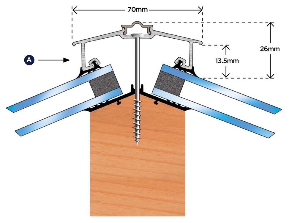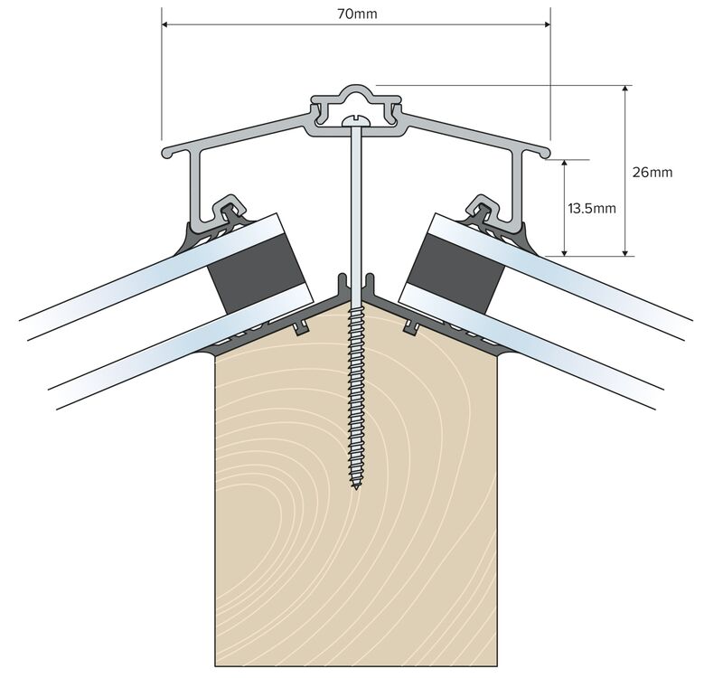 The Capex 70 Concealed Fix Hip Bar: Featuring a high-quality EPDM gasket with cord, securely held in place by a unique design. This versatile glazing bar is suitable for capping single, double, or triple glazed glass, acrylic, and polycarbonate structures for roof pitches of 15-50 degrees.