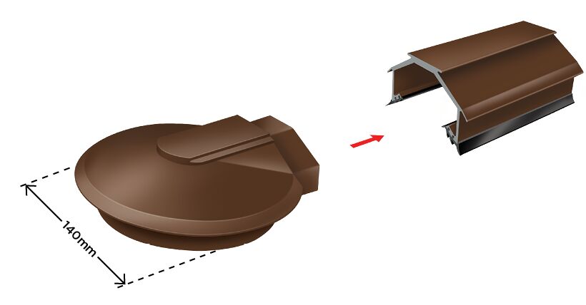 The Solstice Cresfinex Ridge MK4 100mm Radius End Cap is a specialised accessory for use with the Cresfinex Ridge MK4 system. Designed to fit the curved or rounded ends of the ridge system, this end cap provides a seamless finish. It ensures a weatherproof seal, protecting against water ingress and debris buildup while enhancing the roof's aesthetics.