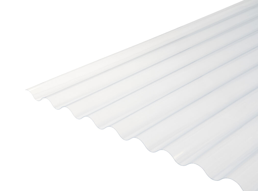 Solstice 3” ASB Corrugated PVC Roof Sheet, featuring a transparent design and offering exceptional resistance to chemicals, weather, and UV radiation.