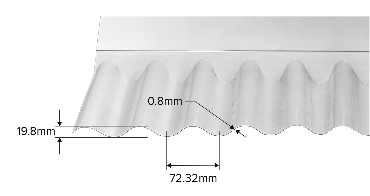 The Solstice Clear PVC Wall Flashing has been specifically designed to fit 3" ASB profile roof sheeting.
